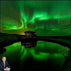 Ontem à noite, perto de Keflavik na Islândia.Aurora Boreal refletindo na água parada! Foto de Babak Tafreshi !