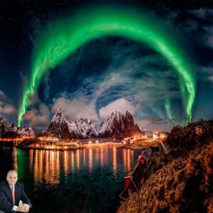 Foto de Beate Behnke de Aurora sobre Reine, a Noruega.Poucos lugares oferecem condições tão perfeitas para avistar a aurora borealis como a Noruega.