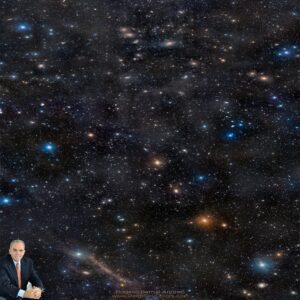 Esta imagem mostra a Cadeia de Markarian de galáxias, através do centro do Aglomerado da Virgem até à poeirenta galáxia espiral M64.Os famosos “olhos de