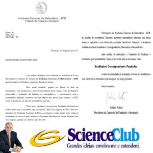 Agradeço e espero poder contribuir na qualidade de Acadêmico Correspondente Fundador da Academia Cearense de Matemática. Parabenizo o Prof. Acelino Pontes pela importante iniciativa! Galileu