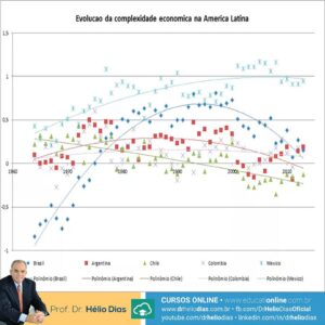 A América Latina não conseguiu completar o salto dos produtos simples para os produtos complexos! No mapa acima podemos observar a evolução da complexidade dos