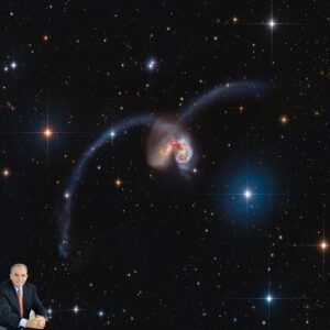 A cerca de 60 milhões de anos-luz de distância na constelação austral do Corvo (em latim: Corvus), duas grandes galáxias estão colidindo. As estrelas nas