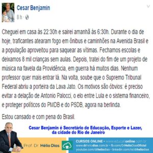 EDUCAÇÃO,CIÊNCIA,TECNOLOGIA E INOVAÇÃO NOSSA ÚNICA SAÍDA! https://www.youtube.com/watch?v=2UTGtQyhjSM Cesar Benjamin penso que todos estamos cansados de tanta corrupção,falta de ética e de moral! Por favor não
