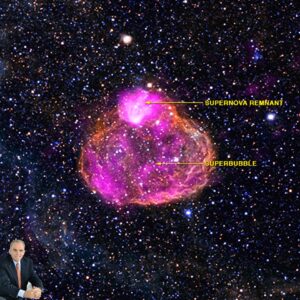 Esta imagem composta mostra a super bolha DEM L50 (também conhecida como N186) localizada na Grande Nuvem de Magalhães a cerca de 160.000 anos-luz da