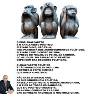 Bertold Brecht em seu poema, “Analfabeto político”, sustenta a tese de que o cidadão que se aliena das discussões políticas é o maior responsável pela